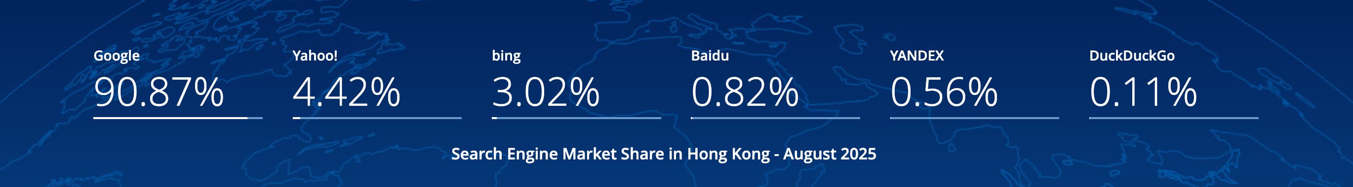 Because Google’s search market share in Hong Kong has long been high (90.87%), allocating budget to Google Search covers the largest pool of active demand. The latest data shows Google still holds a clear lead in 2025.